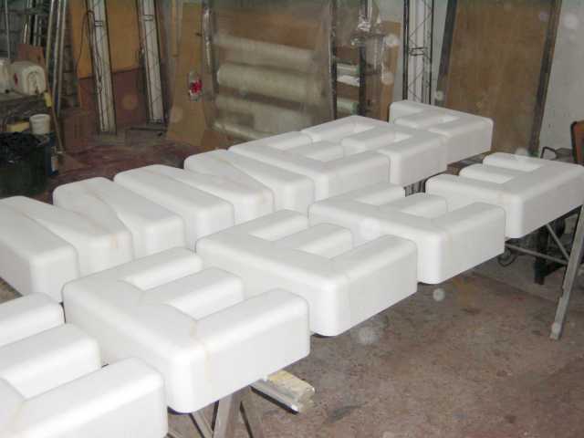 Lettre E en polystyrène Fabrication en série de lettre en polystyrène Lettrage sur signalétique publicitaire